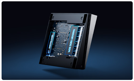 Experimentá un rendimiento increíblemente rápido con UBox, que cuenta con 32GB de memoria y un amplio espacio de almacenamiento de 1TB. ¿Necesitás más potencia? Mejorá tu sistema sin esfuerzo con ranuras de memoria SO-DIMM de doble canal, que admiten hasta 64GB de RAM total, y ranuras duales para SSD M.2 2280, que permiten actualizaciones de almacenamiento flexibles de hasta 2TB.
