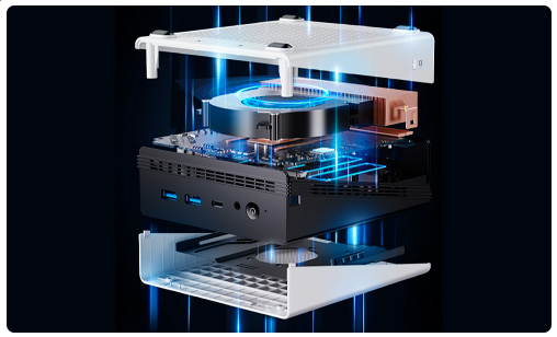 Esta potente mini PC, que admite un TDP de hasta 45W y utiliza un ventilador de refrigeración activo de alta eficiencia, ofrece un rendimiento consistentemente bueno y velocidades ultrarrápidas, sin dejar de ser silenciosa y fresca. ¡Disfrutá de la tranquilidad incluso mientras jugás y editás videos!