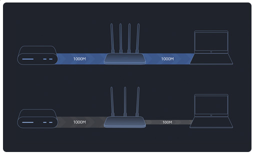 - El Xiaomi Router AC1200 incluye un puerto WAN gigabit y dos puertos LAN Gigabit, lo que permite alcanzar fácilmente velocidades de red de 100Mbps o más. En comparación con los puertos de 100 megabits, permite aprovechar mejor cada megabit de ancho de banda.