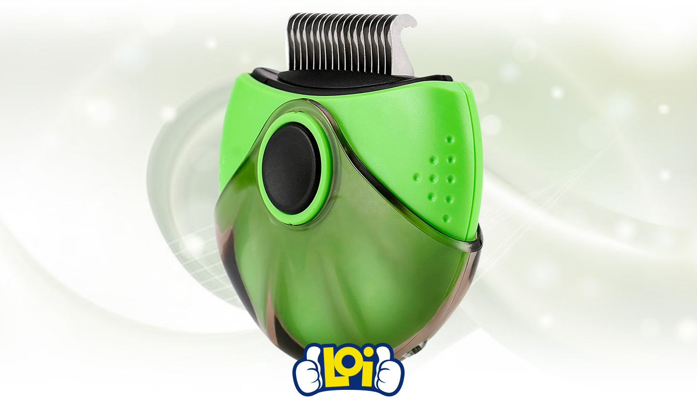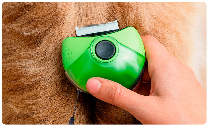 Cepillo 3 en 1 para Mascotas, con Cabezal Giratorio y 3 Tipos de Peine: para Pulgas, Desenredador y Deslanador - Verde