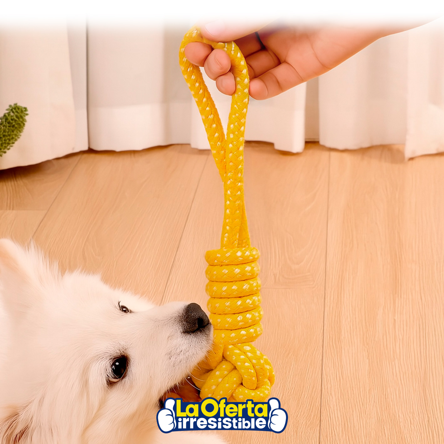 Divertido, resistente y seguro, este juguete interactivo de cuerda con nudo es ideal para mantener a tu perro activo y entretenido durante horas. Su diseño robusto y su fabricación en algodón de alta calidad lo hacen perfecto incluso para los perros que más muerden. Gracias a su mango ergonómico y a la pelota con nudos, es ideal para juegos de tira y afloja que fortalecen el vínculo entre vos y tu mascota, mientras estimulan su mente y ayudan a prevenir el aburrimiento. Además, es portátil y liviano, perfecto para llevarlo al parque o de paseo.