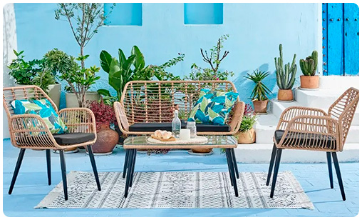 Juego De Jardín con Sillón y 2 Butacas con Almohadones Removibles + Mesa con Vidrio Templado