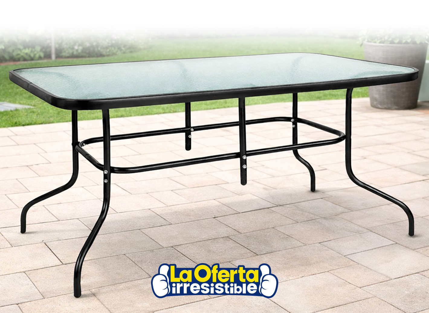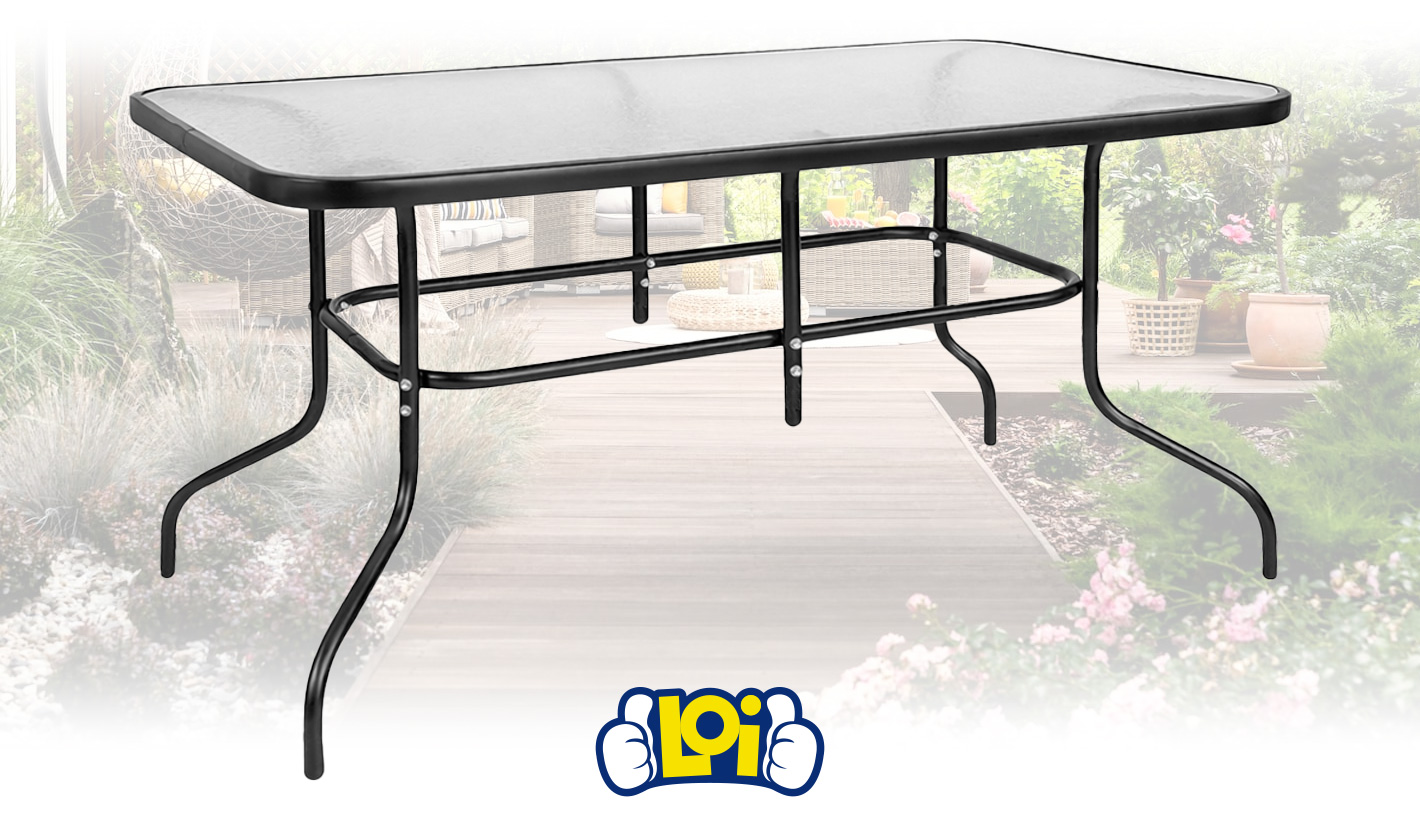 Mesa de Jardín EMPOLi con Estructura de Acero y Superficie de Vidrio, 150x90cm
