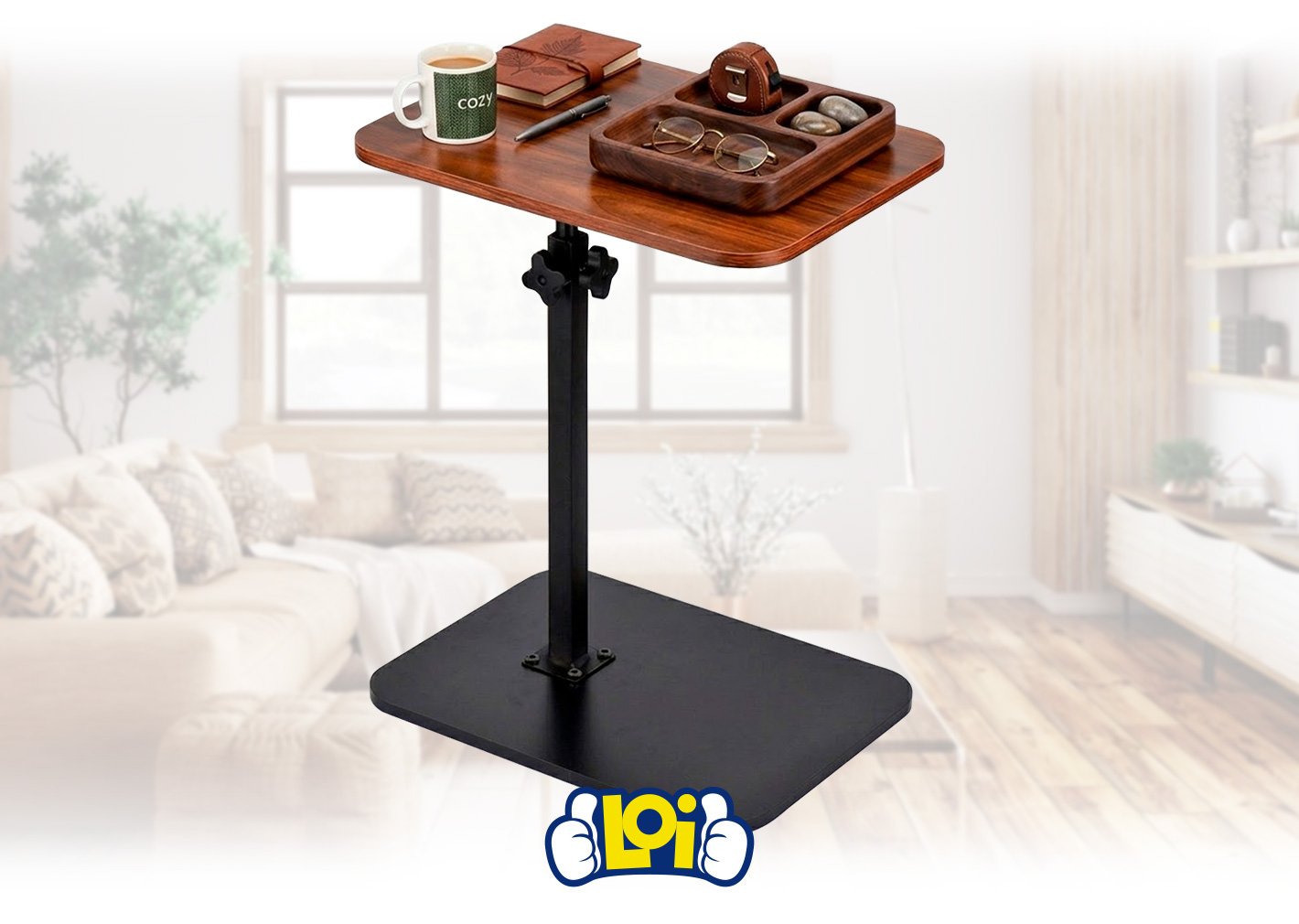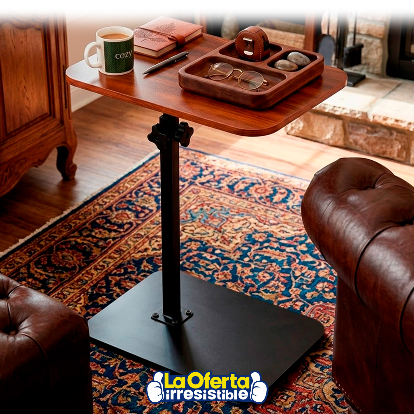 Mesa Auxiliar con Base de Acero al Carbono y Altura Ajustable, 30 x 40 x 75cm