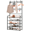 Este perchero y zapatero es la solución práctica y funcional para mantener tu hogar ordenado y organizado. Su estructura de acero inoxidable garantiza resistencia y durabilidad, sin deformarse fácilmente. Con 6 ganchos de plástico resistentes, podrás colgar fácilmente abrigos, sombreros, toallas, bolsos y más. Además, es fácil de instalar y cuenta con estantes de tela impermeable que facilita su limpieza.