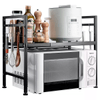 Ampliable La longitud del estante del microondas es ajustable. La altura del estante también se puede ajustar permitiéndote almacenar fácilmente un microondas u otros electrodomésticos de cocina, haciendo que tu cocina esté más limpia y ordenada.