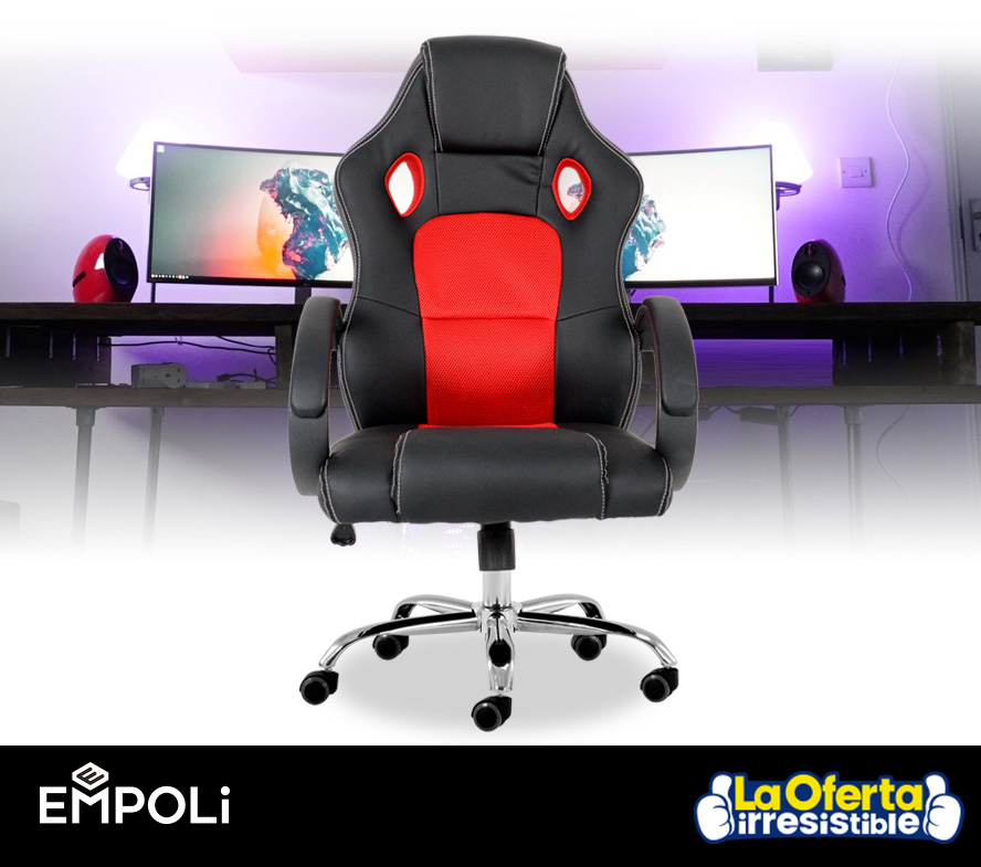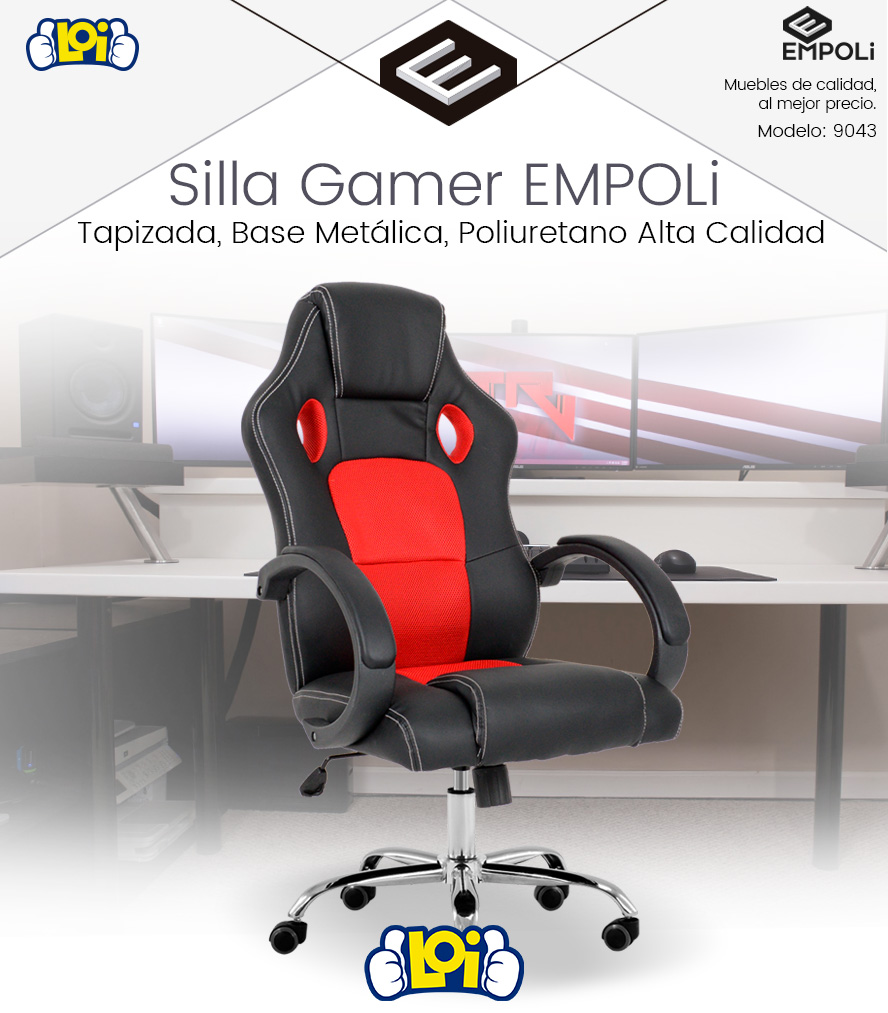 Silla Gamer EMPOLi Tapizada, Base Metálica, Poliuretano Alta Calidad - Azul