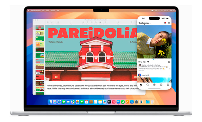 Si te gusta el iPhone, te va a encantar la Mac. Porque está diseñada para que sea igual de fácil de usar. Usá Duplicación del iPhone para ver y controlar tu iPhone desde tu Mac, copiá y pegá texto de tu iPhone a la Mac o localizá un dispositivo con la app Encontrar. La Mac y el iPhone funcionan tan bien juntos que parece magia.