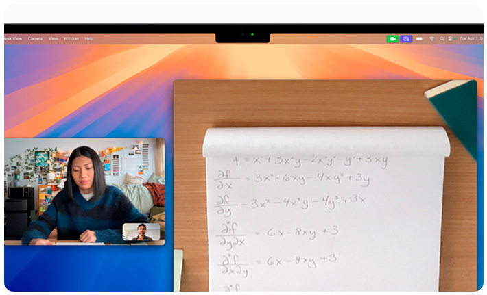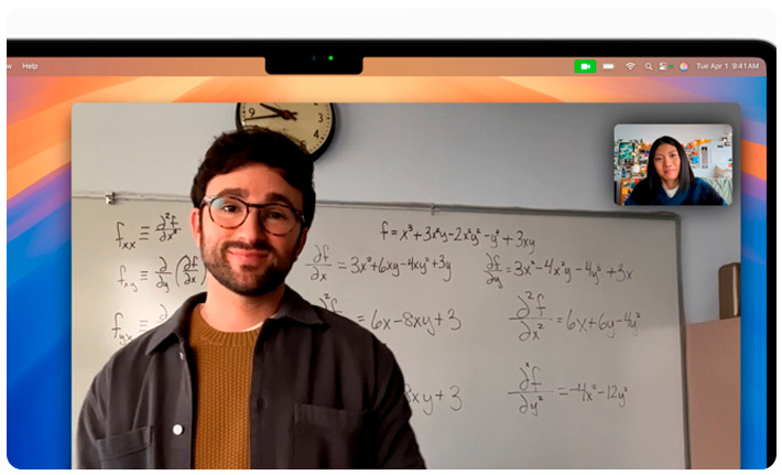 La MacBook Air mejora la claridad de tu voz y reduce el ruido de fondo en tus llamadas de audio y de video.
