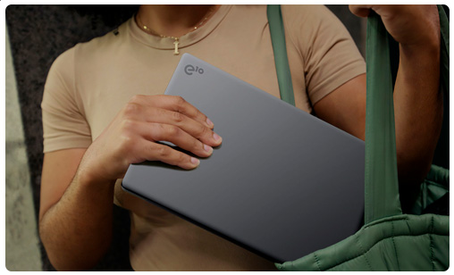 El e10 ETBook no solo es delgado y liviano, sino que el diseño de biseles ultradelgados le otorga un tamaño ultracompacto, para que puedas disfrutar de todos los beneficios de una pantalla FHD de 14" en un chasis tan pequeño como muchas computadoras portátiles de 13".