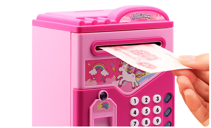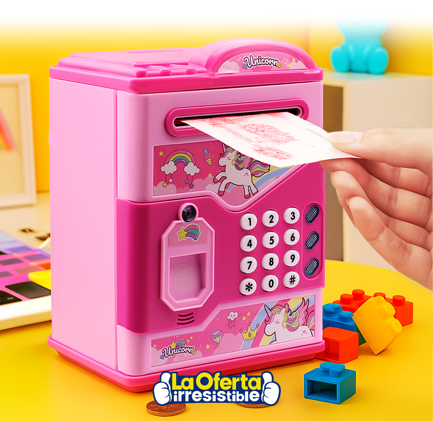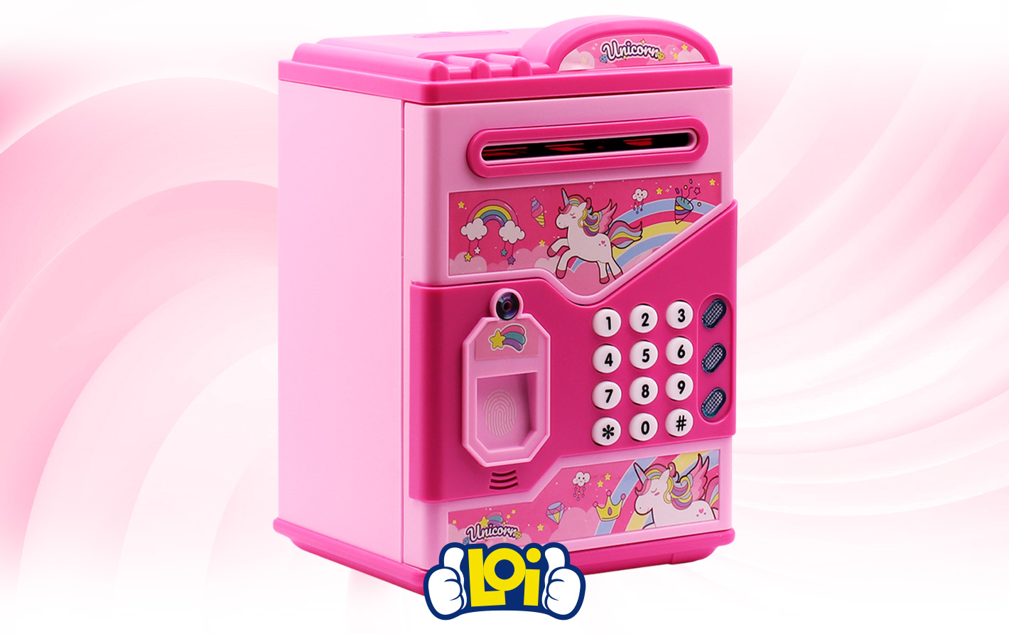 Alcancía Infantil Caja Fuerte con Teclado, Detección de Huella, Luces y Sonidos - Unicornio