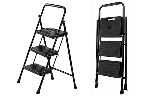 Escalera Plegable de 3 Escalones de Acero de Carbono con Patas Antideslizantes, Altura 105cm