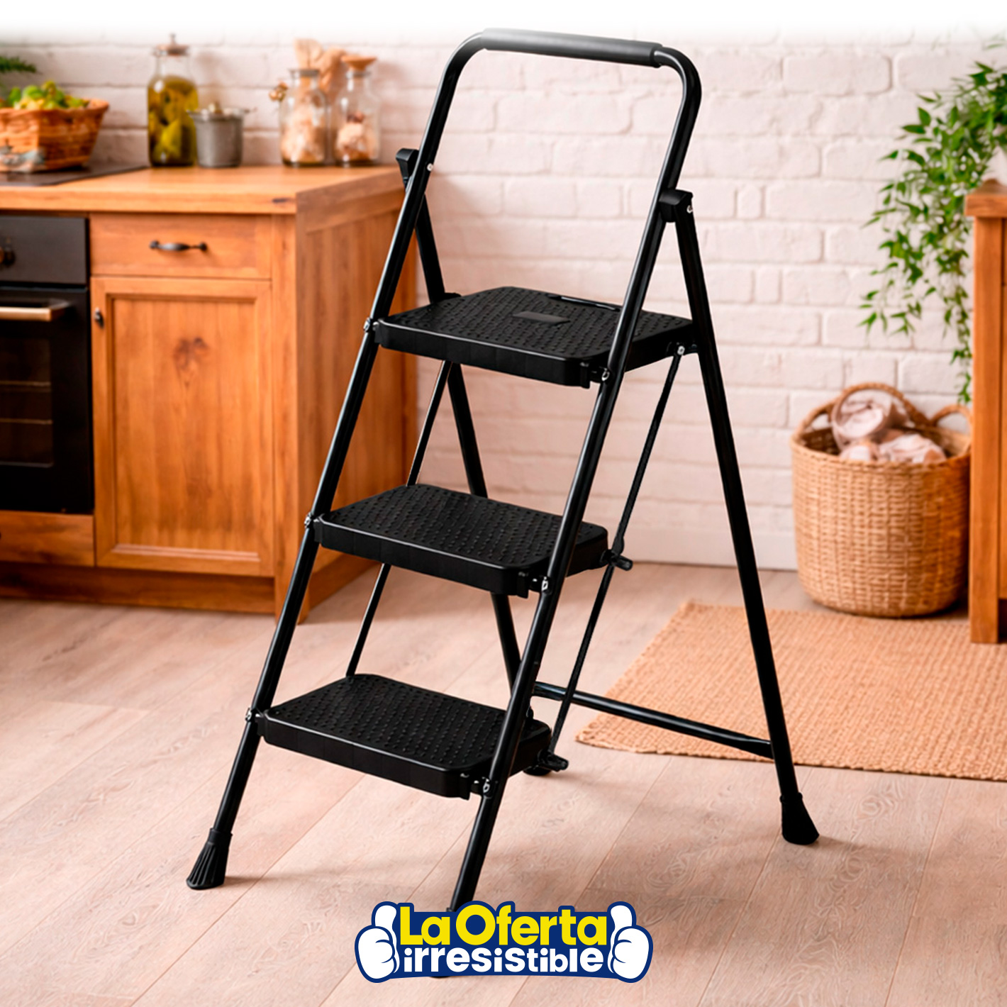 Esta escalera de 3 escalones es una opción práctica y segura para el uso diario en el hogar, gracias a su estructura de acero resistente y componentes de alta calidad que garantizan durabilidad. Incorpora un sistema de bloqueo automático, escalones anchos con superficie antideslizante y patas de goma que brindan mayor estabilidad y confianza al usarla. Su diseño plegable, liviano y compacto permite guardarla fácilmente, y su versatilidad la hace ideal para tareas como limpieza, organización, mantenimiento y decoración en distintos espacios de la casa.Disponible en: