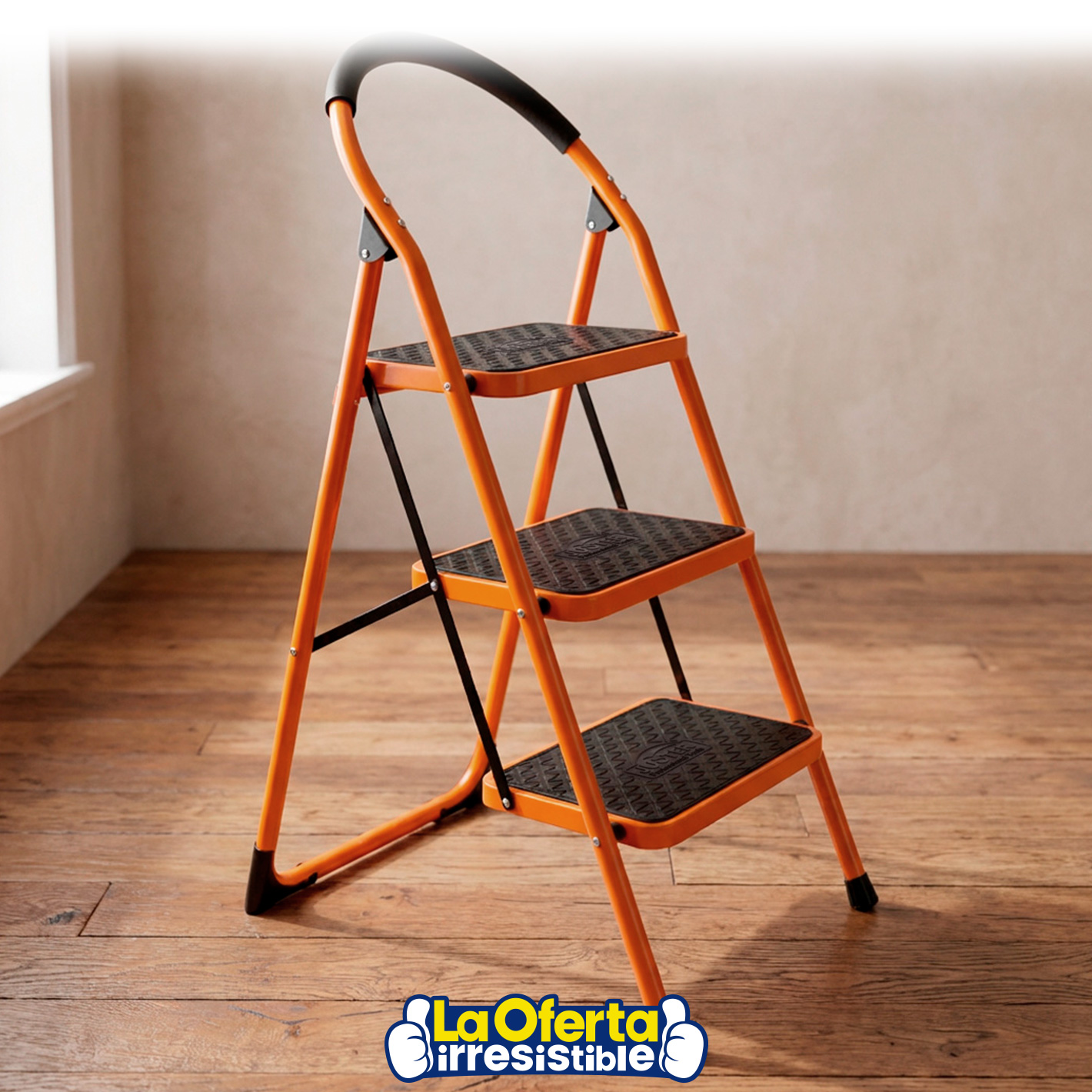 La Escalera Plegable de 3 escalones es una solución práctica y segura para alcanzar lugares elevados en el hogar. Fabricada con estructura de acero resistente, ofrece gran estabilidad y soporta hasta 150kg, siendo ideal para tareas domésticas como limpiar placares, alacenas, ventanas o realizar arreglos en altura. Su diseño plegable y liviano permite abrirla y guardarla fácilmente, ocupando poco espacio cuando no está en uso. Además, cuenta con escalones y patas con antideslizante, que brindan mayor seguridad y firmeza durante su utilización.Podés canjear este artículo usando tus Metros OCA
