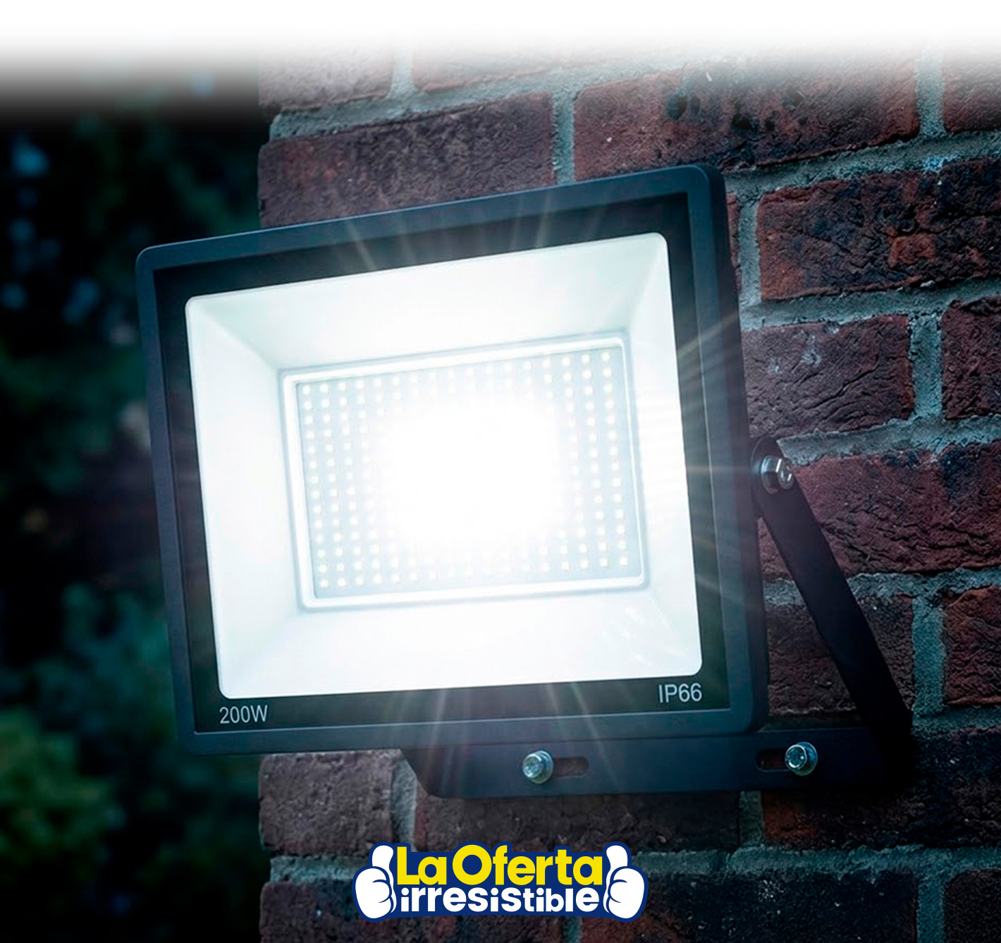 Este foco LED de 200W ofrece una iluminación potente, clara y eficiente, ideal para todo tipo de espacios tanto interiores como exteriores. Su luz fría de 6500K brinda mayor visibilidad, siendo perfecta para patios, garajes, jardines o áreas de trabajo. Fabricado en aluminio resistente y con protección IP66, está preparado para soportar condiciones climáticas exigentes. Además, su diseño orientable permite dirigir la luz según tus necesidades, ofreciendo versatilidad y una larga vida útil de hasta 50.000 horas para un uso duradero y confiable.Disponible en: