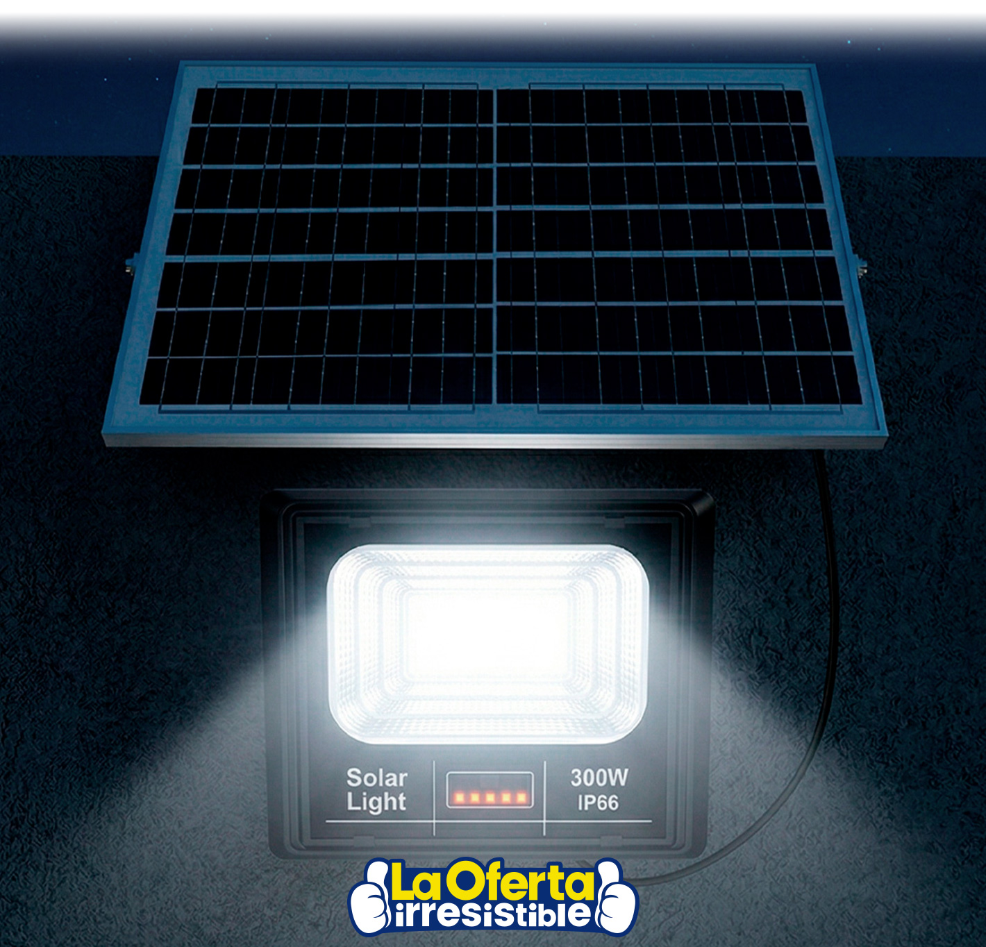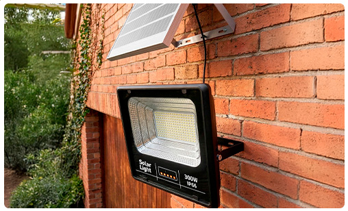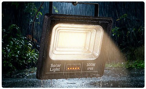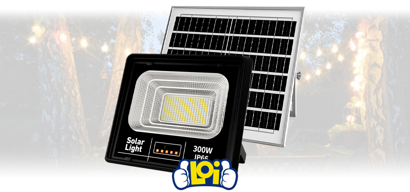 Foco Solar LED JORTAN Reflector 300W de Potencia con Fotocélula, Control Remoto, Panel Solar y Protección IP66
