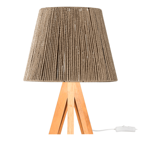 Lámpara Portátil de Mesa con Patas de Madera y Pantalla de Cuerda Sisal, Rosca E27 - Caqui