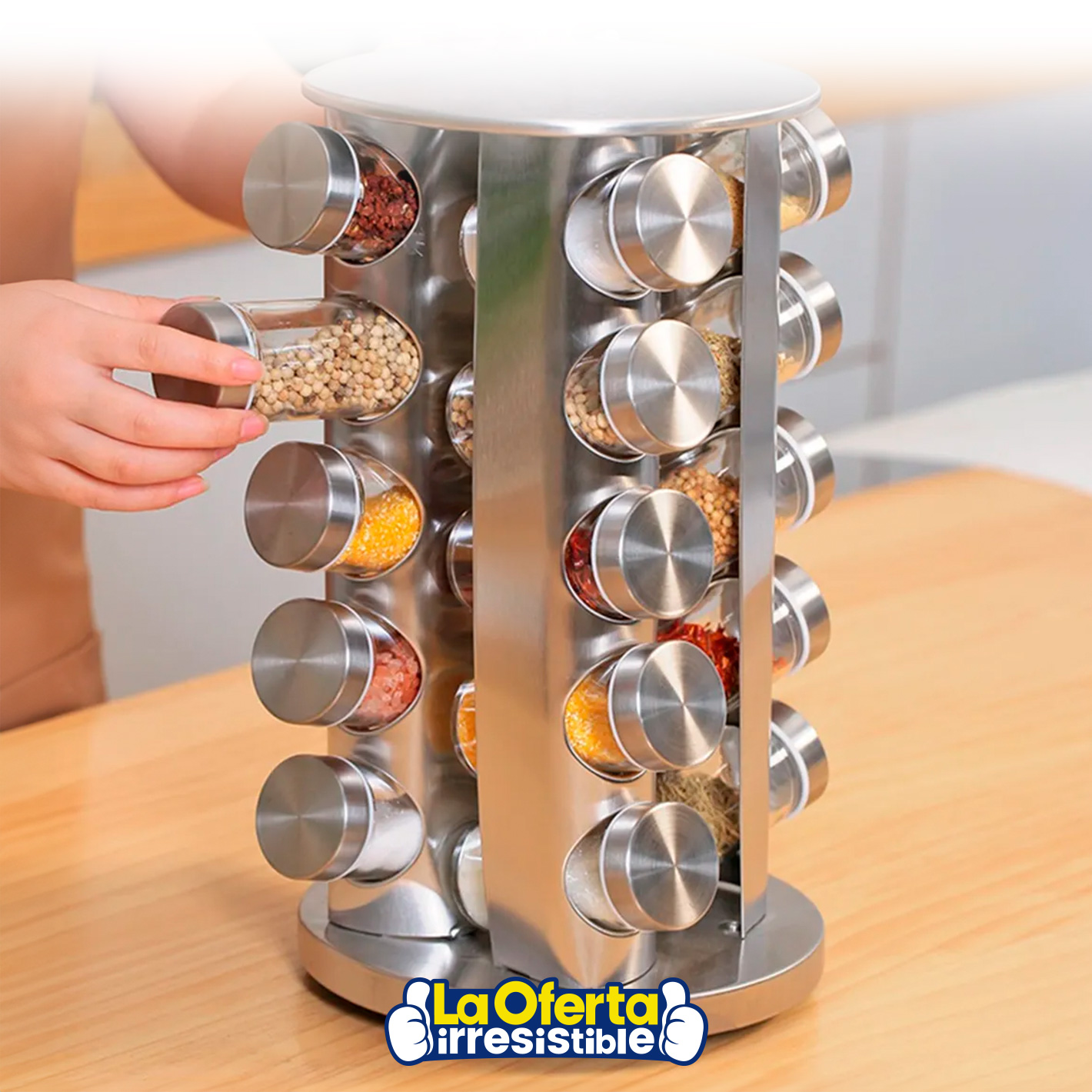 El Set de 20 Especieros CROiX giratorio en acero inoxidable y frascos de vidrio es el complemento perfecto para tu cocina. Tiene un diseño elegante y una base giratoria de 360° que te permite acceder de manera rápida a tus condimentos favoritos. Además, gracias a que los frascos cuentan con tapas de rosca, aseguran la frescura de tus especias y hierbas, facilitando su uso y almacenamiento.Podés canjear este artículo usando tus Metros OCA
