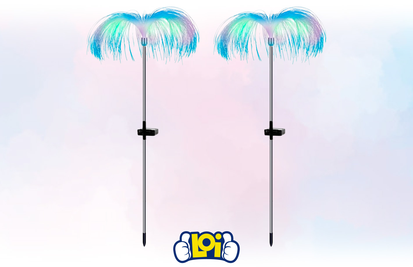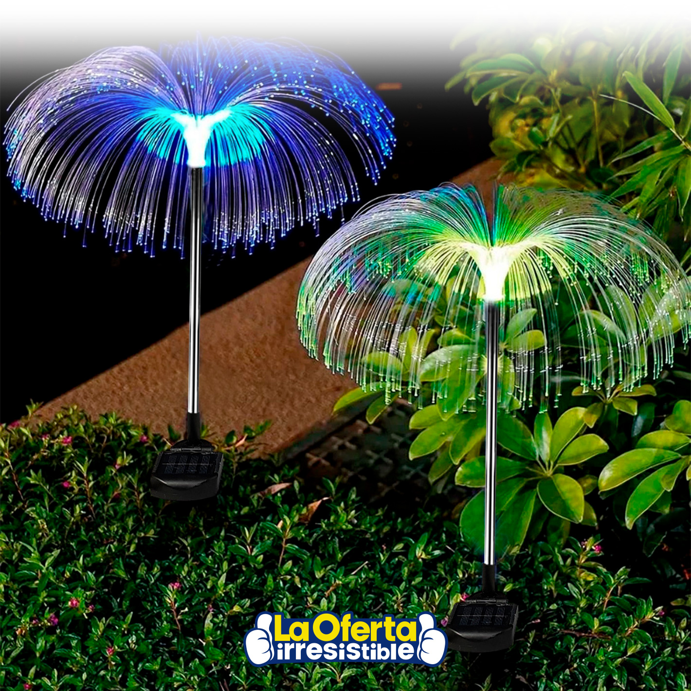 Set de 2 Lámparas de Jardín con Diseño de Medusa, Luz LED Multicolor, Batería Recargable y Panel Solar Incorporado