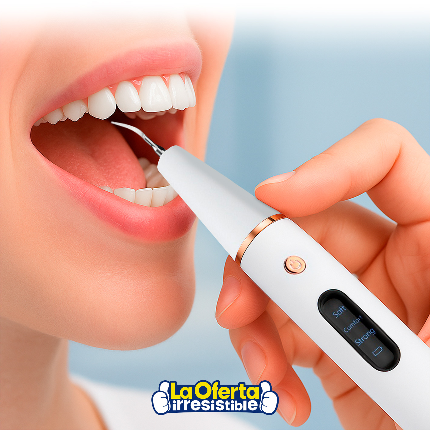 Lográ una sonrisa más limpia y saludable con este limpiador dental ultrasónico recargable, diseñado para eliminar eficazmente sarro, manchas y cálculos dentales desde la comodidad de tu hogar. Fabricado con materiales de alta calidad como ABS, PC y acero inoxidable, cuenta con 3 modos de limpieza (suave, medio y fuerte), ideal incluso para dientes sensibles. Su potente vibración ultrasónica de 35kHz, pantalla LED, luz integrada y batería de litio recargable de 500mAh lo convierten en una herramienta completa y segura. Compacto, liviano y fácil de usar, incluye cabezales intercambiables, toallas con alcohol, llave de ajuste y cable de carga. Perfecto para mantener tu higiene bucal sin salir de casa.
