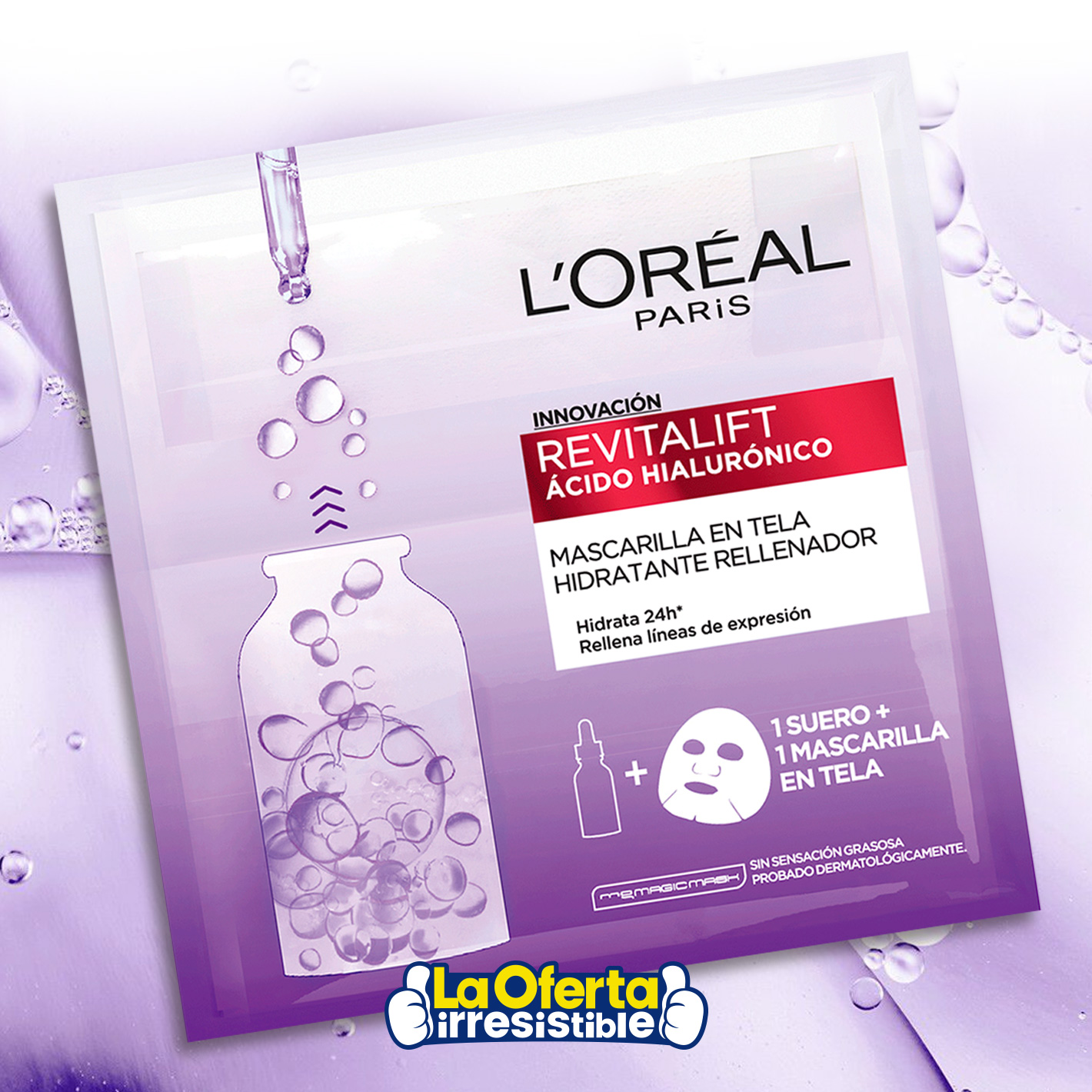 Mascarilla L´Oreal Revitalift de Tela con Ácido Hialurónico