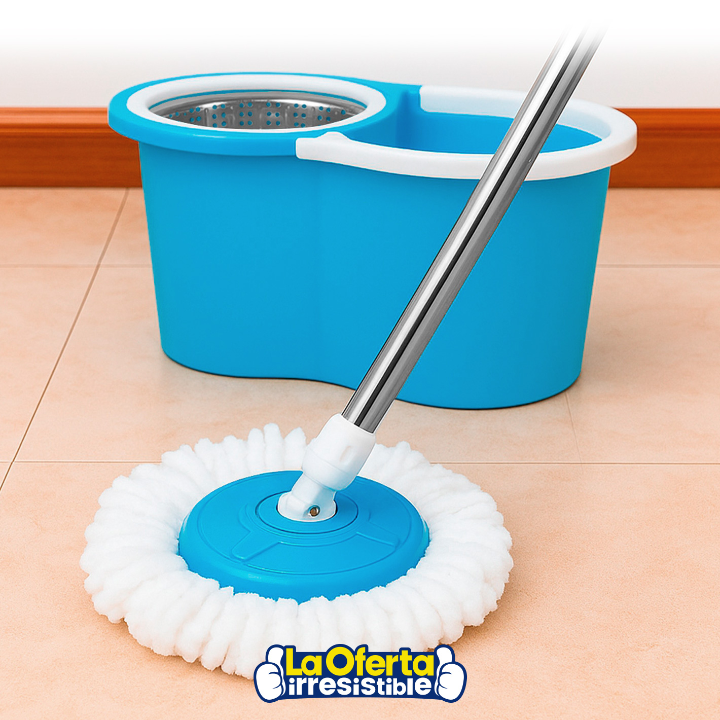 Esta mopa con balde centrifugador es ideal para una limpieza eficiente, rápida y sin esfuerzo. Su cabezal giratorio 360° permite alcanzar fácilmente rincones y zonas de difícil acceso, mientras que el balde con cesto de acero inoxidable permite enjuagar y escurrir la mopa de manera práctica, controlando el nivel de humedad según el número de rotaciones. Fabricada con materiales resistentes como acero inoxidable, plástico y microfibra, es liviana, duradera y fácil de usar. Incluye repuesto de microfibra y cuenta con un sistema de rotación de alta velocidad que ahorra tiempo y esfuerzo en la limpieza diaria.
