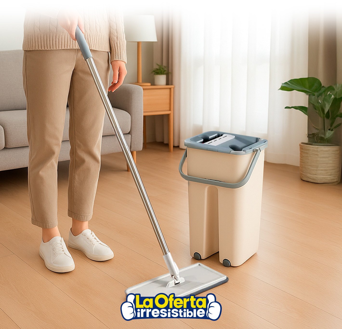 • Mantené tus pisos impecables con el juego de mopa y balde con rociador plano, diseñado para limpiar de forma rápida, cómoda y sin esfuerzo. Su cabezal giratorio de 360° llega a cada rincón, mientras el mango ergonómico telescópico protege tu espalda y cuello. Incluye mopas de microfibra reutilizables que absorben el doble de agua y suciedad, ideales para todo tipo de superficies, desde madera y cerámica hasta vinilo o piedra. Con su rociador integrado y sistema de escurrido automático, olvidate de los baldes pesados y disfrutá de una limpieza más práctica, duradera y eficiente.