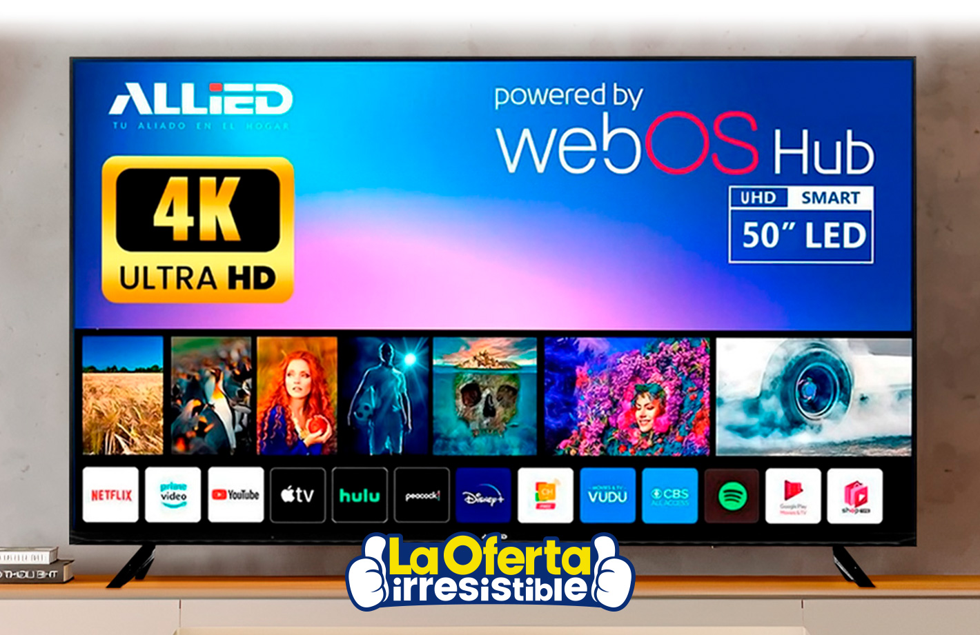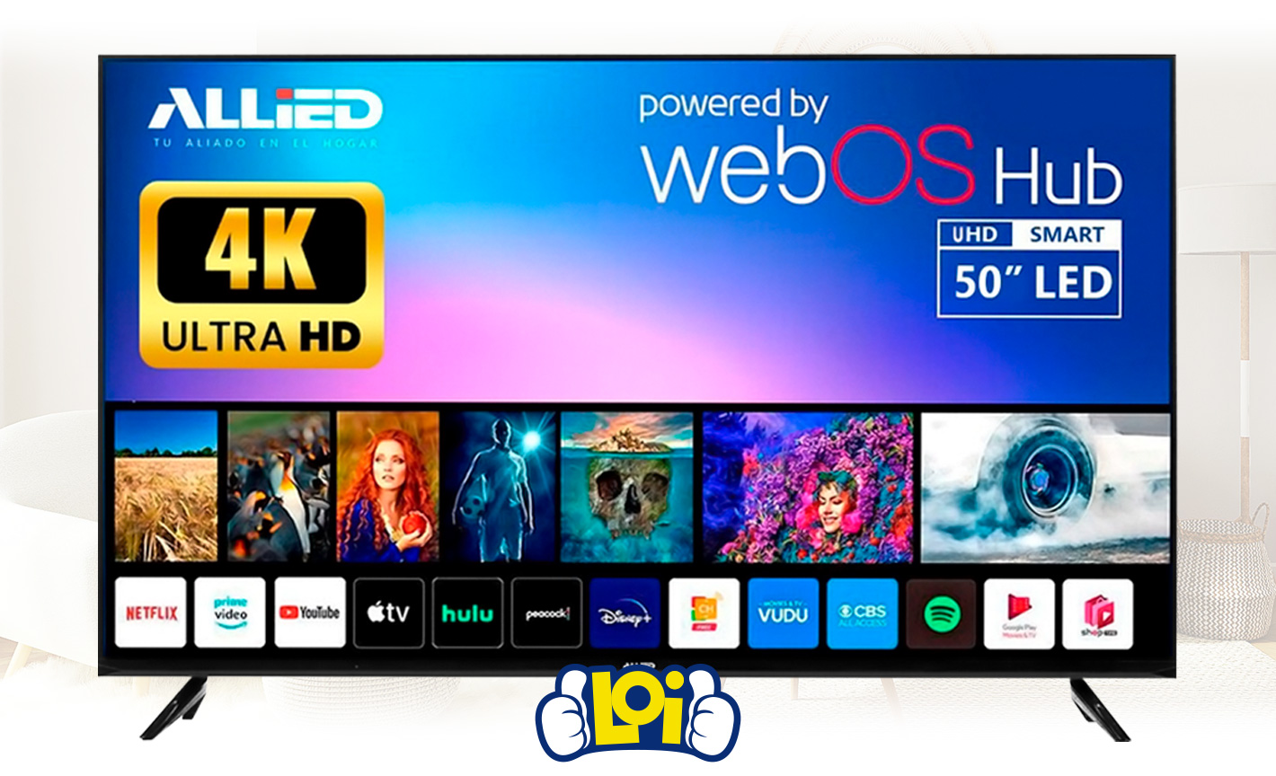 Smart TV ALLIED 50” UHD 4K WIFI Sistema WebOS Hub + Soporte de Pared DE REGALO