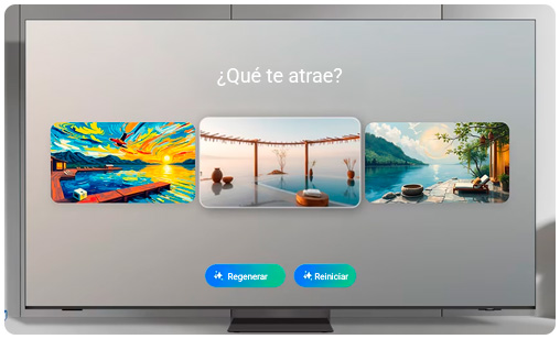 Elegí las palabras clave del ambiente que deseás y dejá que la AI haga su magia. Tu televisor generará bellas imágenes únicas que pueden cambiar la atmósfera de tu hogar.
