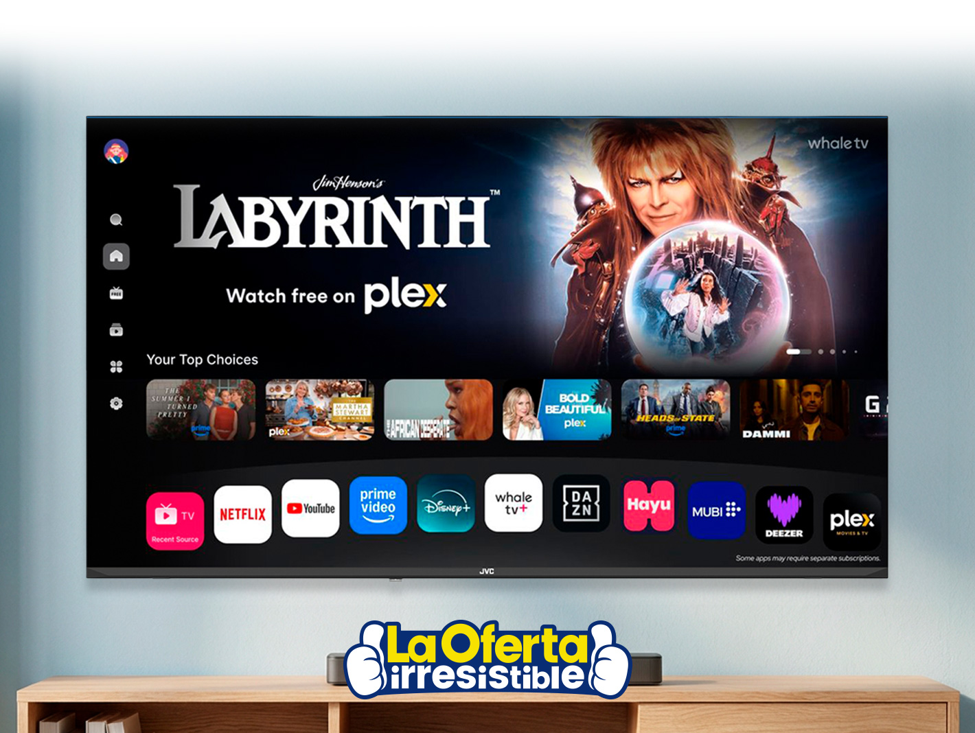Disfrutá tus contenidos favoritos con una calidad de imagen superior gracias al Smart TV JVC de 50 pulgadas 4K UHD. Su panel DLED y la compatibilidad con HDR10 y HLG ofrecen colores más vivos, gran contraste y detalles nítidos, ideal para tus películas, series y videojuegos. Con Whale TV y apps como Netflix, YouTube, Prime Video y Disney+, disfrutás una experiencia simple y completa. Además, cuenta con conectividad WiFi de doble banda, Bluetooth 5.0 y multiples puertos HDMI, USB y Ethernet.Disponible en: