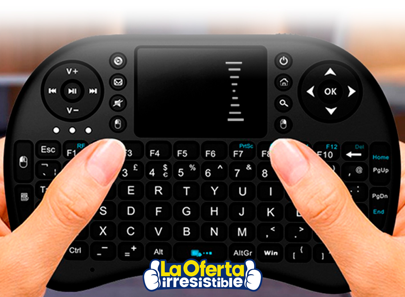 Mini teclado inalámbrico 2.4GHz, portable y fácil de guardar. Perfecto para trabajar en la oficina, llevarlo junto a ti en tus viajes, o para usarlo en la PC de tu casa. El panel táctil te ayuda a manejar el cursor como si utilizaras tu notebook; teclado y mouse, dos dispositivos en uno solo para que navegar sea más fácil. Ideal para smart tv, pc, notebook, consolas.Disponible en: